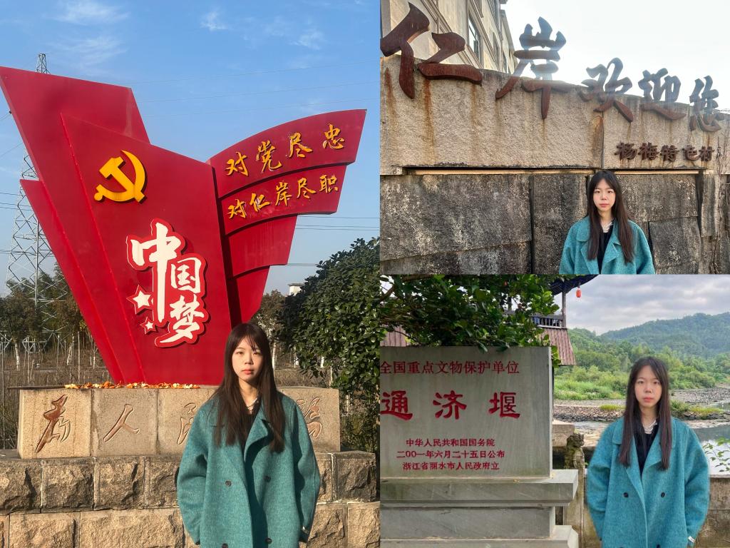 潘音宇同学前往浙江省丽水市九坑村,沿着习近平总书记在浙江任职期间的考察路线,与当地居民进行友好访谈,深刻理解总书记提出的“绿水青山”与“金山银山”辩证统一的关系。她认为,这一理念不仅是对乡村振兴的启示,更是全社会应共同遵循的发展道路。