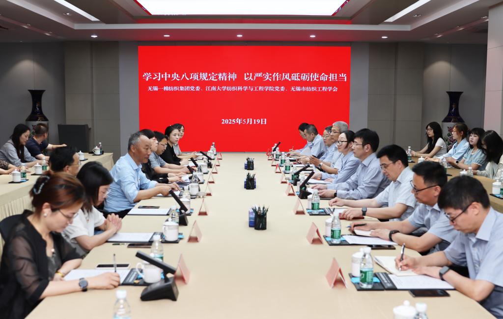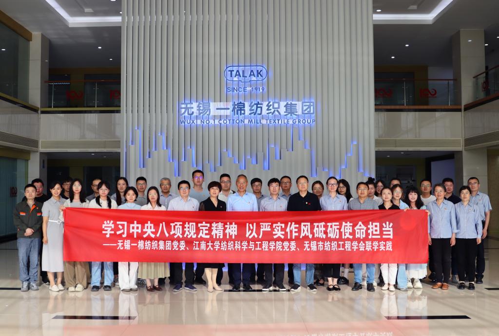 党委赴无锡一棉纺织集团开展联学实践活动。江南大学党委常委、党委统战部部长、工会主席朱飞,学院党委书记张菁燕,无锡市纺织工程学会、学院教授王鸿博,以及学院党委委员、师生党支部书记纺织所教师党支部成员等30余人参加活动。无锡一棉纺织集团党委书记、董事长蔡赟等热情接待了校院师生,活动由无锡一棉纺织集团党委副书记、纪委书记、工会主席糜娜主持。