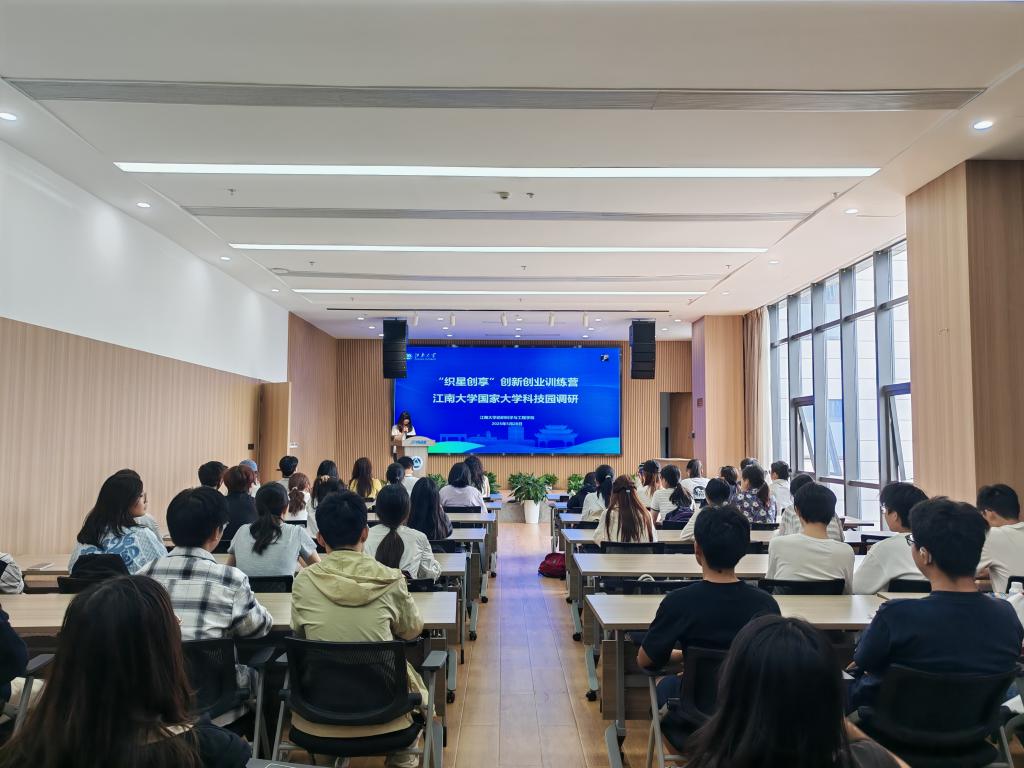 “织星创享”创新创业训练营师生一行前往江南大学国家大学科技园开展调研活动。江南大学科技园副总经理张翼热情接待,企业服务部石玲琦和江南大学校友、起源时代创始人樊子源受邀作专题讲座。学院辅导员伍胤鸿、孙慧以及全体训练营学员参与活动。