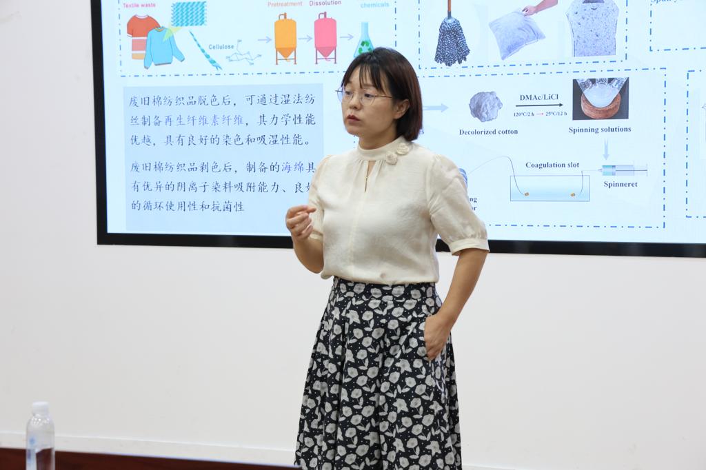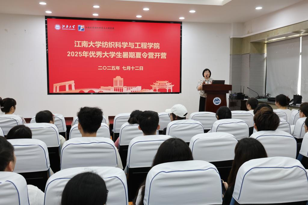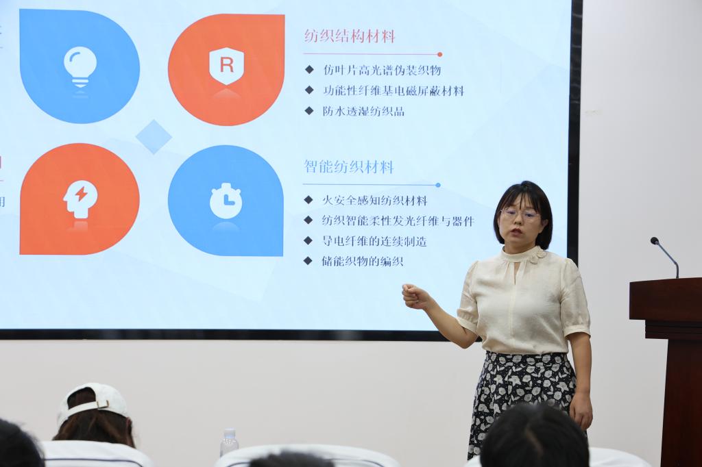 副院长张丽平教授向大家介绍了特种防护纺织材料团队以及科技成果,并作题为《多波段伪装纺织材料的制备关键技术》的学术报告,深入为同学们解析伪装材料的研究思路与关键技术要点,激发了同学们的创新思维活力。老师们的报告精彩纷呈,围绕纺织学科前沿方向与研究热点,为营员们呈现了一场思想盛宴。会上,同学们围绕学习中的疑难向老师们提问,老师们一一耐心解答,现场互动频繁,气氛热烈。