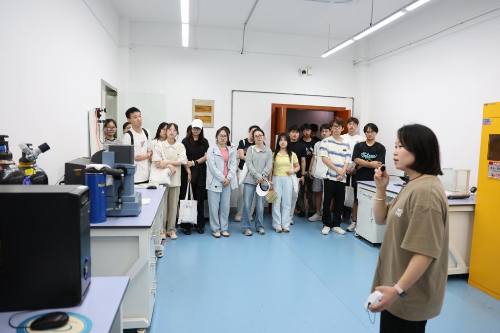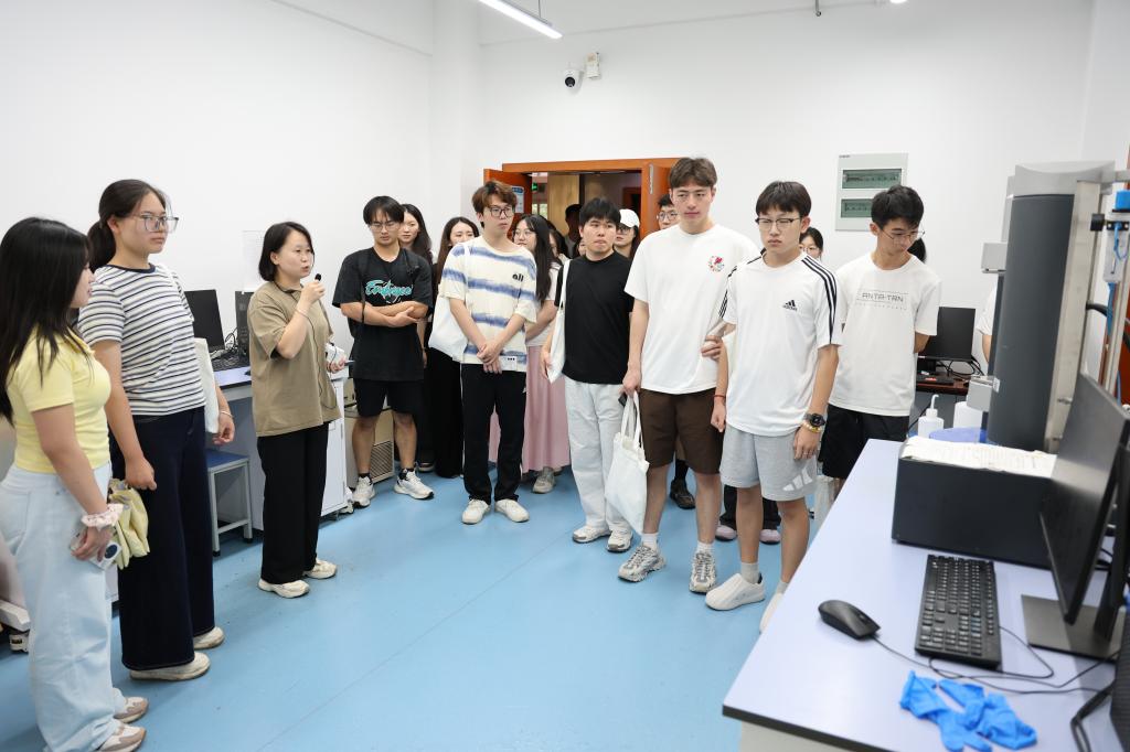 学术报告后,同学们分别在薛有松老师与周钰琦老师的带领下参观了学院的针织技术教育部工程研究中心与精密仪器实验室,高大的针织装备、精致的针织纺织品和精密的分析仪器展示了纺织工程的力学与结构之美,让同学们对纺织有了更直观而生动的认识,对学院有了更深刻的了解。