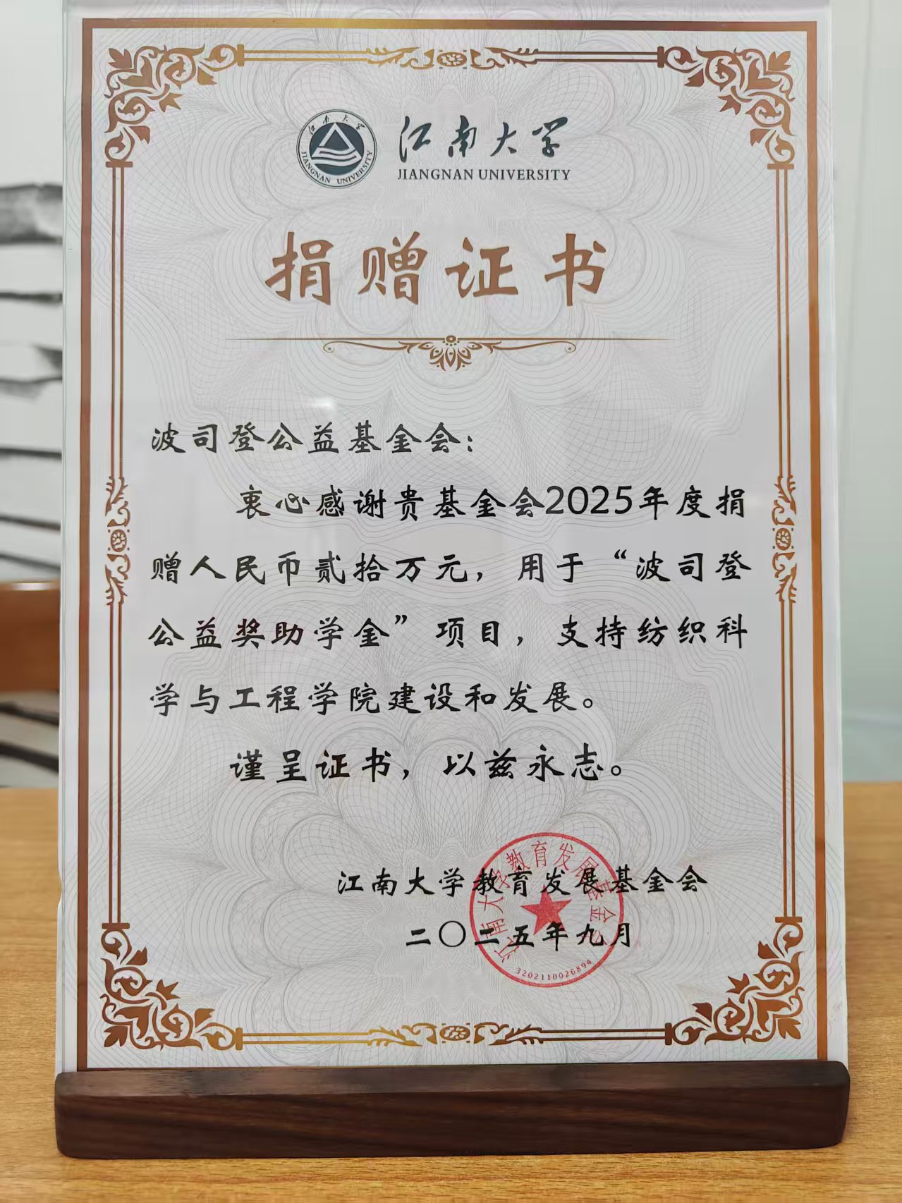 近日,江南大学与波司登公益基金会签订了江南大学“波司登公益奖助学金”第三轮捐赠协议,每年捐赠20万元用于资助纺织服装类品学兼优、家庭经济困难学生。