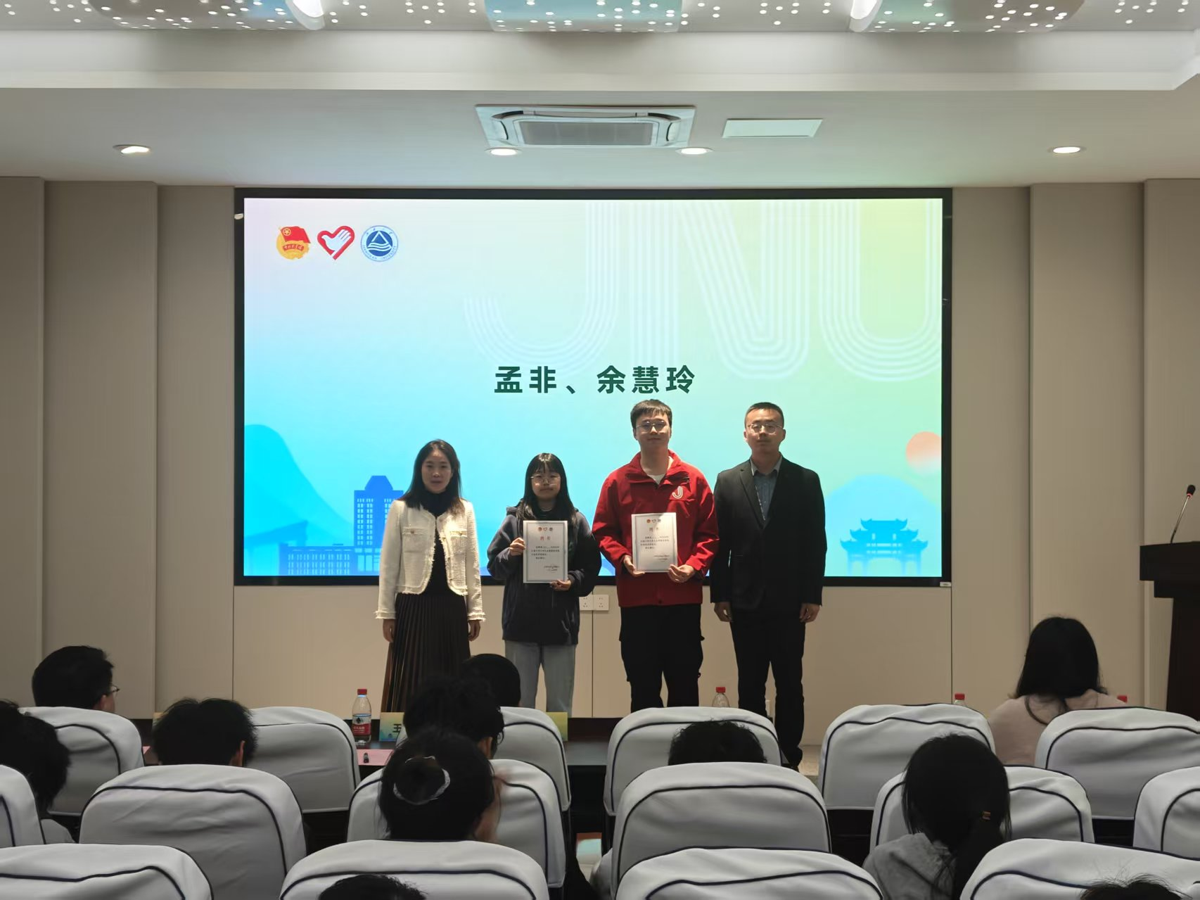 在“志愿归来话成长”环节,江南大学第26届研究生支教团志愿者孟非、乡村振兴志愿者余慧玲分别结合具体岗位分享了自己的志愿服务经历。他们深耕乡村,用个人行动诠释青年担当,更传递出“奉献、友爱、互助、进步”的志愿精神,激励着更多江南学子投身志愿服务,奔赴基层一线,用青春力量书写时代答卷。